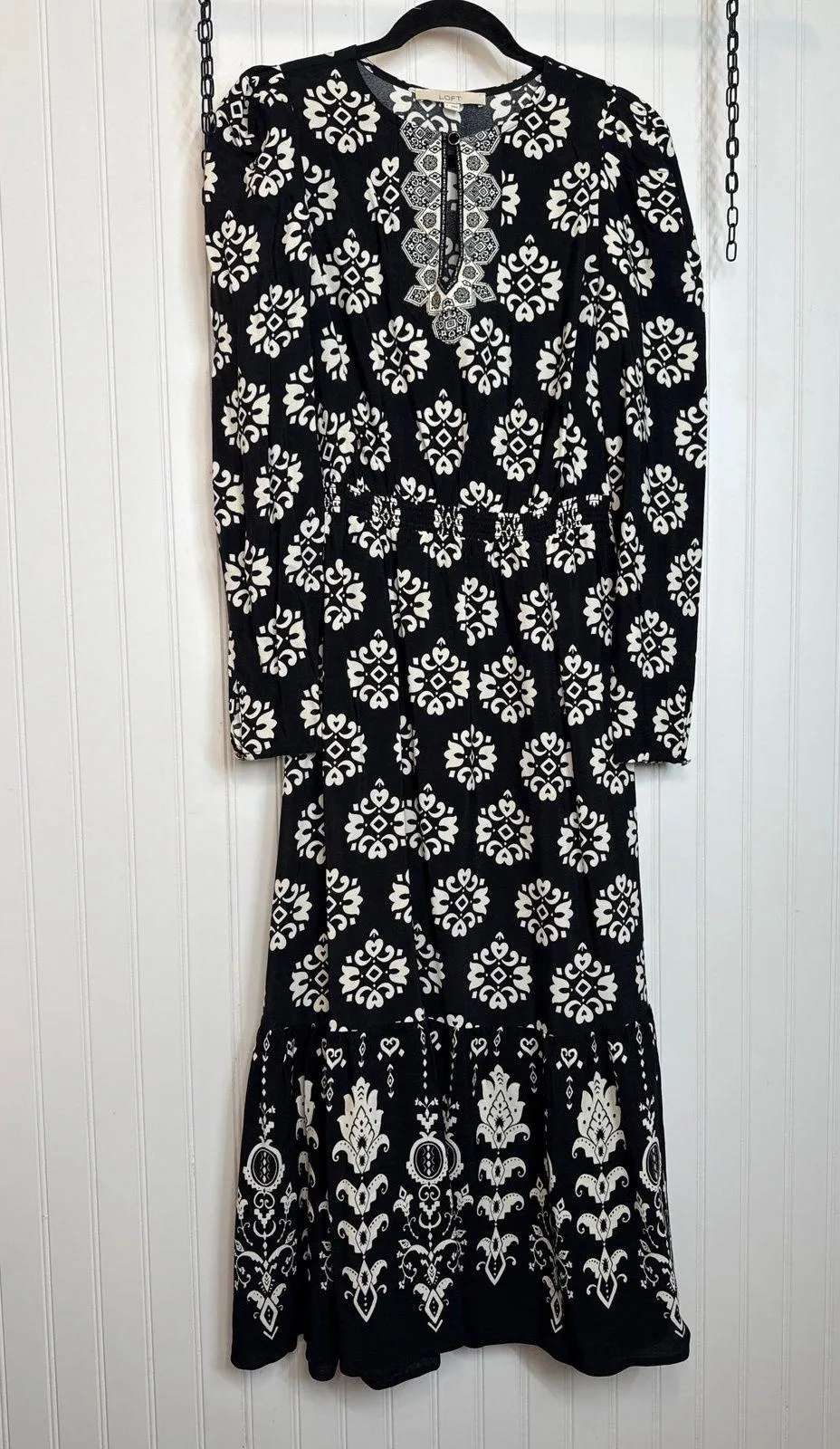 Floral Print Crew Neckline with Keyhole Long Sleeves Tiered Hem Midi Length 100% Rayon Size Small M... Show more