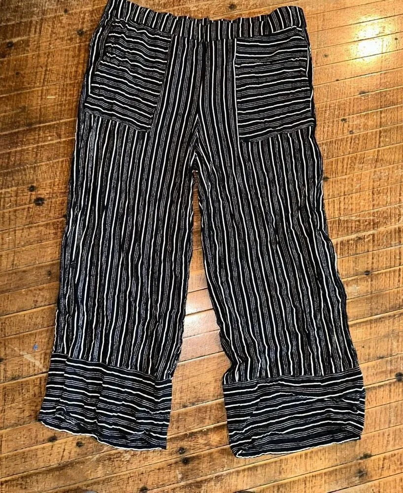 Loft black and white, striped, lightweight, wide leg, vacationcore, palazzo pants. Pairs well with a... Show more
