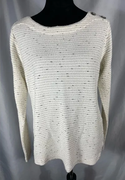 Pretty boatneck sweater from Loft. Ivory cream color with a black gray color speckled throughout. Bu... Show more