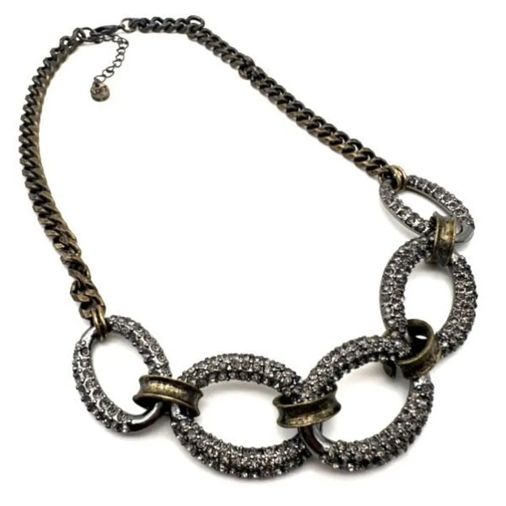 Loft Chunky Pave Two Tone Gunmetal Choker Necklace Statement Punk Grunge Goth Antiqued style. Some... Show more