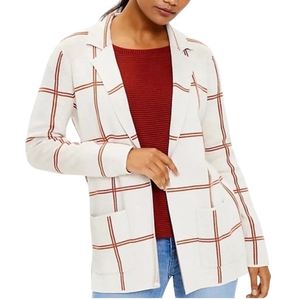 All orders shipped next business day. LOFT Cream Burnt Orange Plaid Knit Blazer Cardigan Sweater Wo... Show more