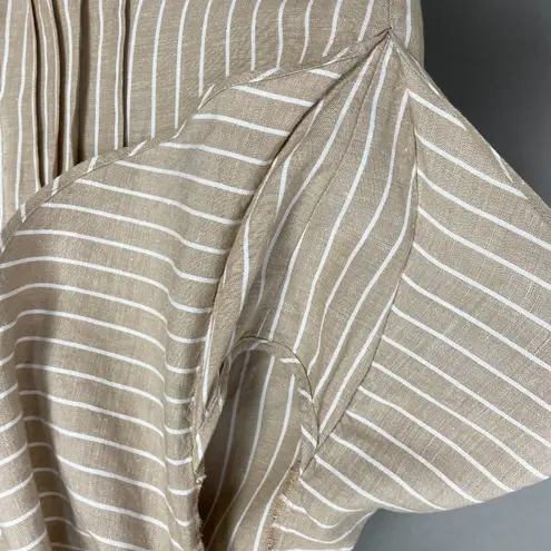LOFT women's beige and white striped dress with ruffled sleeve and pintuck detail and button-down fr... Show more