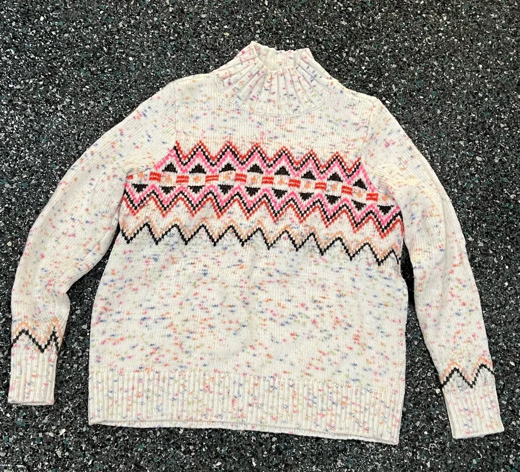 Loft Flecked Fair Isle Mock Neck Sweater Sz Small Gray Pink Apres Ski 90s 80s - $33 - From Michelle