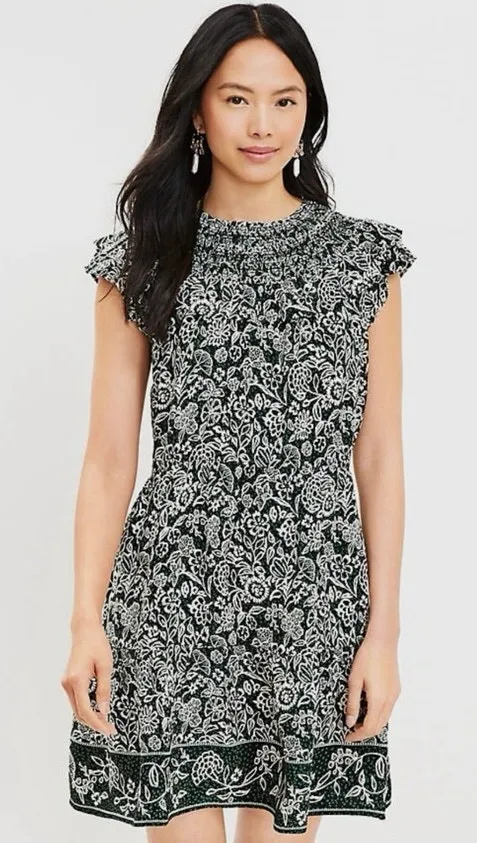 Smocked yoke Flutter cap sleeves Keyhole button back Floral print Fit and flare silhouette Lightweig... Show more