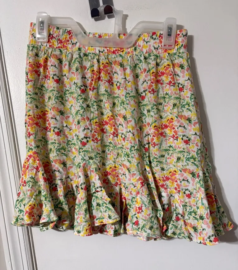 Loft floral mini skirt with a smocked waist and ruffle hem size Small petite good condition good