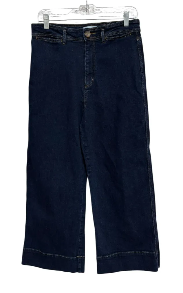 • high rise • wide leg • cropped ankle length • dark wash • zip fly • stretch denim • 98% cotton / 2... Show more