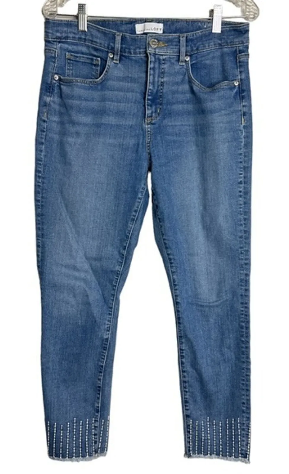 Loft Jeans Womens 10 30" Modern Skinny Crop Blue Raw Hem Embroidered Hem Casual Women’s Size 10 (30... Show more