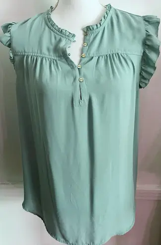 Elegant minty light teal blouse with subtle ruffle accents. Ideal for a refined look. Size large Gr... Show more