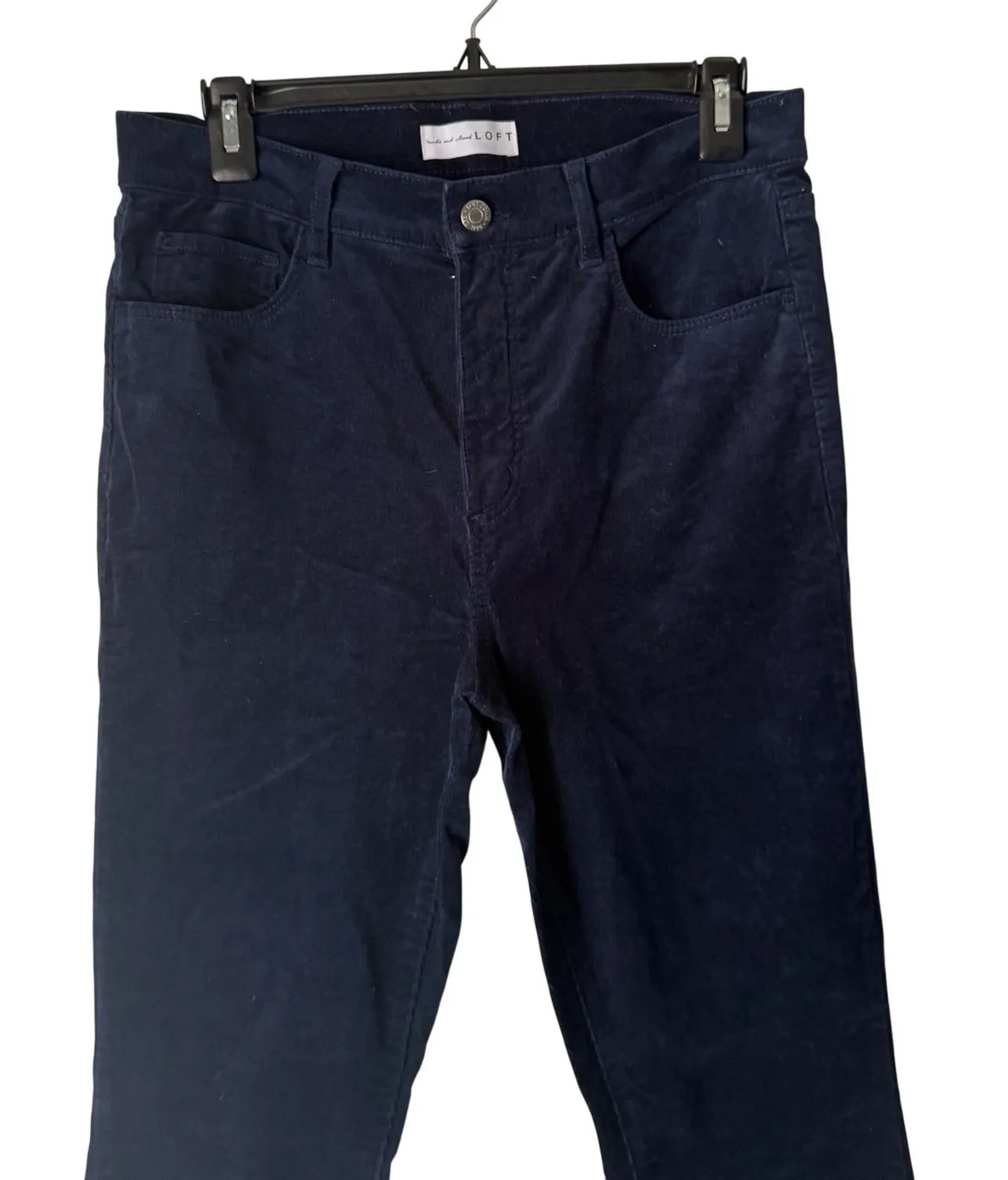 LOFT Navy Blue Corduroy Pants Women High Rise Slim Leg Casual Size 28 Measurements: • Waist: 15 in... Show more