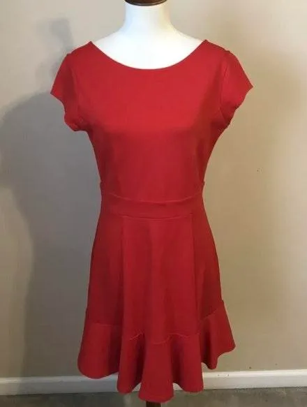NWT red dress from LOFT short sleeves hits above the knee zip closure in back machine wash rayon/ ny... Show more
