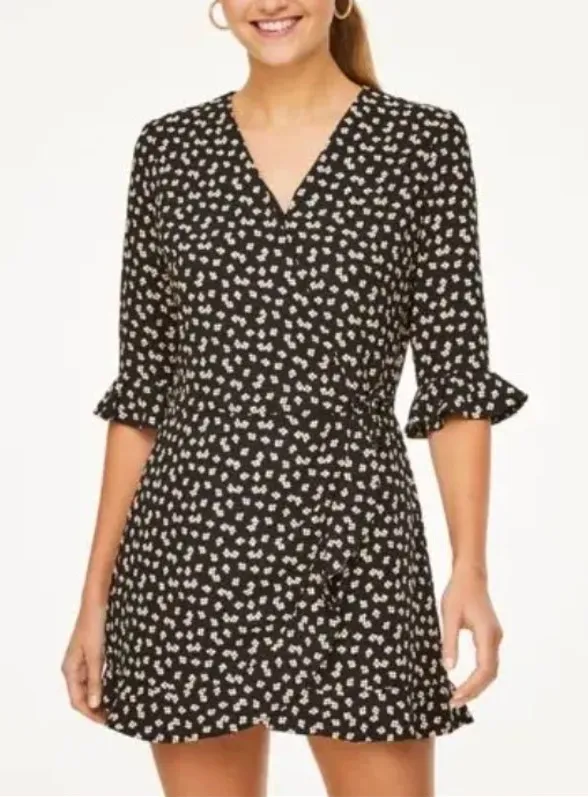 Description: Brand new with tags LOFT Outlet wrap-style dress in a black floral print. Features ruff... Show more