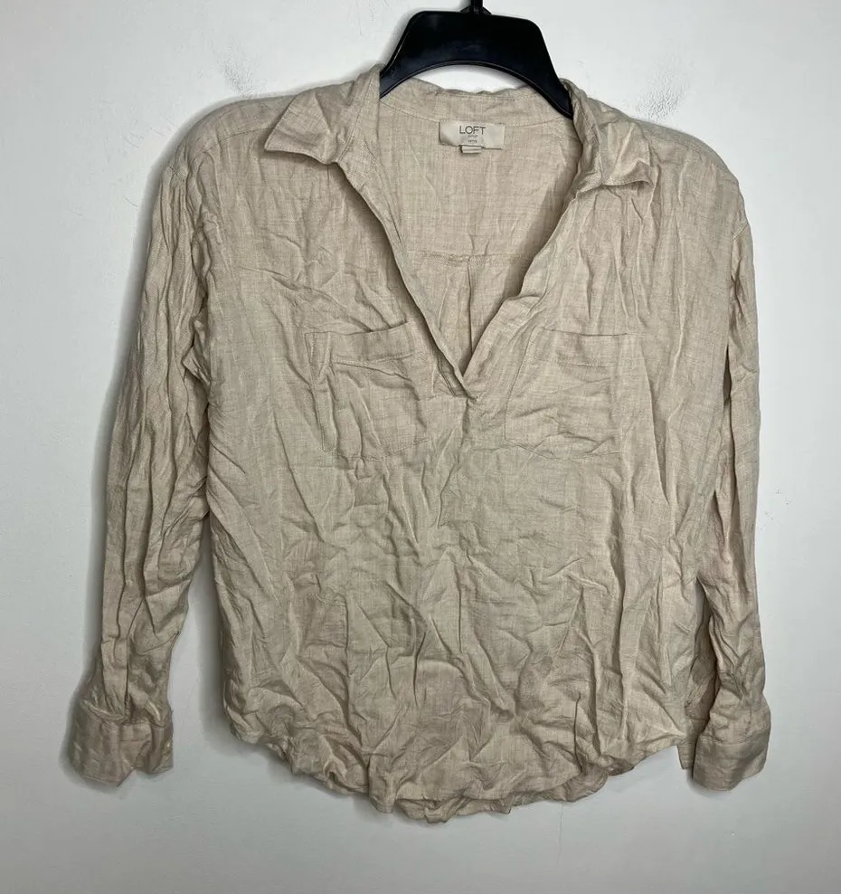 Loft outlet oatmeal tan collared shirt women’s size XXS petite casual, neutral Good preowned condi... Show more