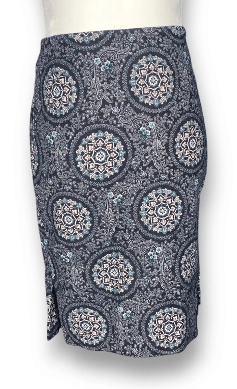 LOFT Outlet Skirt Petite Size 2 Gorgeous mosaic pattern Shades of navy blue turquoise white and blus... Show more