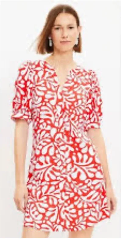 Bright and breezy, this LOFT dress features a bold red-and-white abstract floral print. Designed wit... Show more