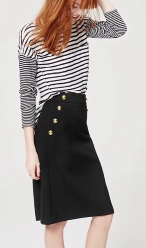 Ann Taylor LOFT Sailor Pencil Skirt Gold Tone Buttons Nautical Professional Career Office in Black... Show more