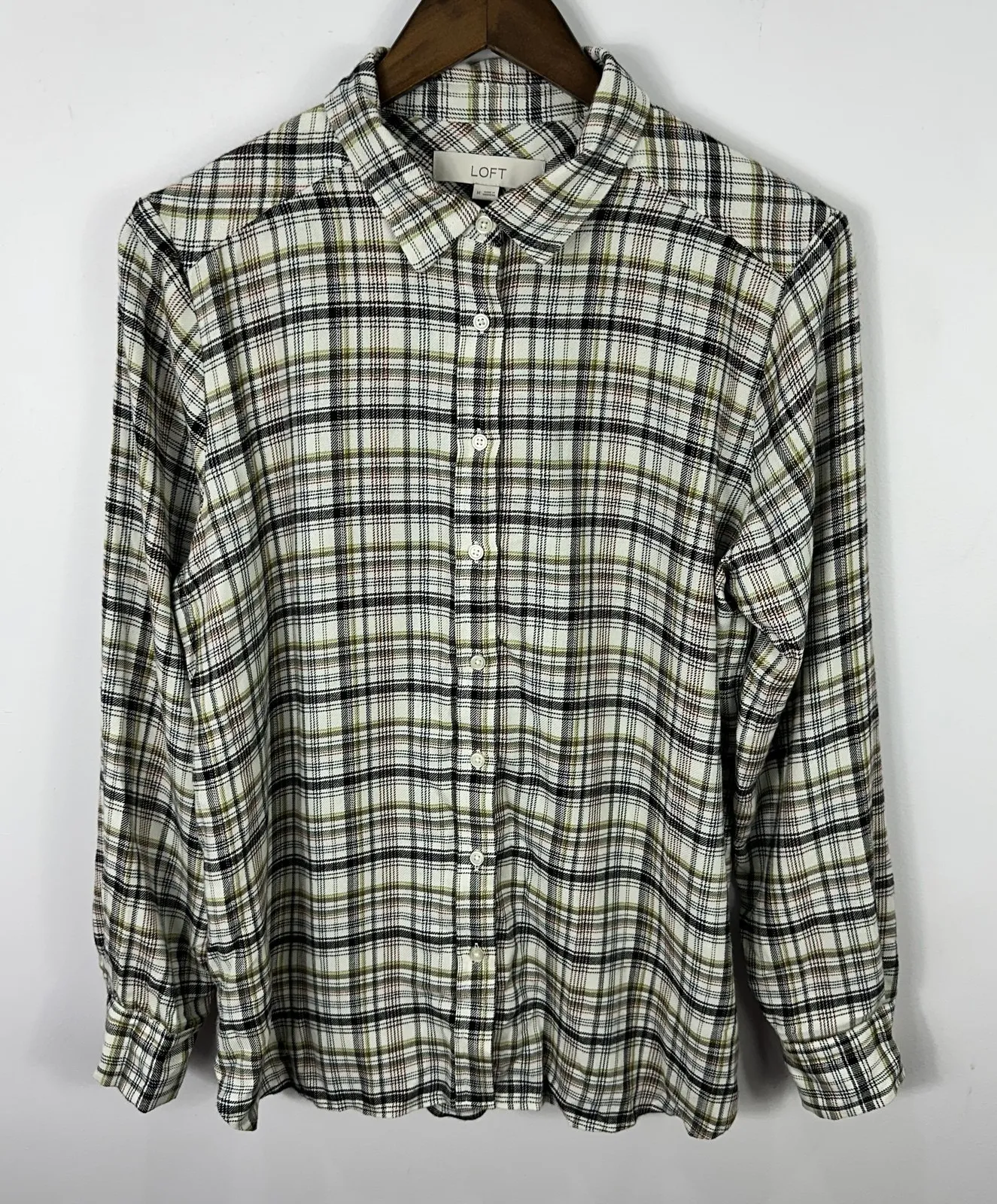 LOFT Shirt Womens Medium Plaid Button Up Long Sleeve Collared Top