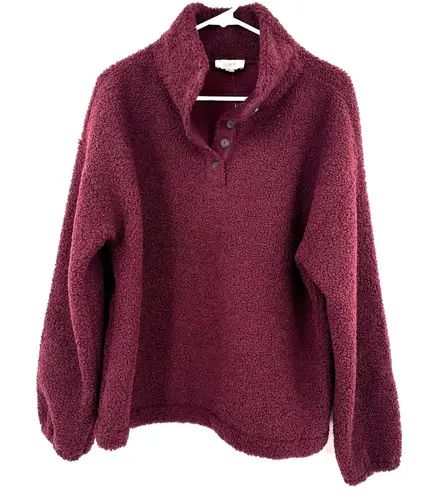 Loft Size Large Sweater Red Maroon New With Tags! Fleece Pullover 1/4 Button Snap Long Sleeve... Show more