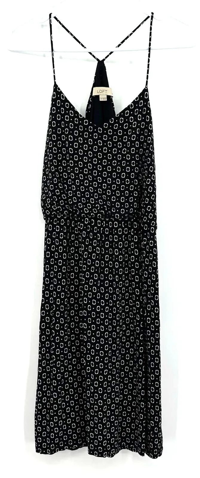 Loft size SP small petite sleeveless dress fitted elastic waist black with white circle geometric de... Show more