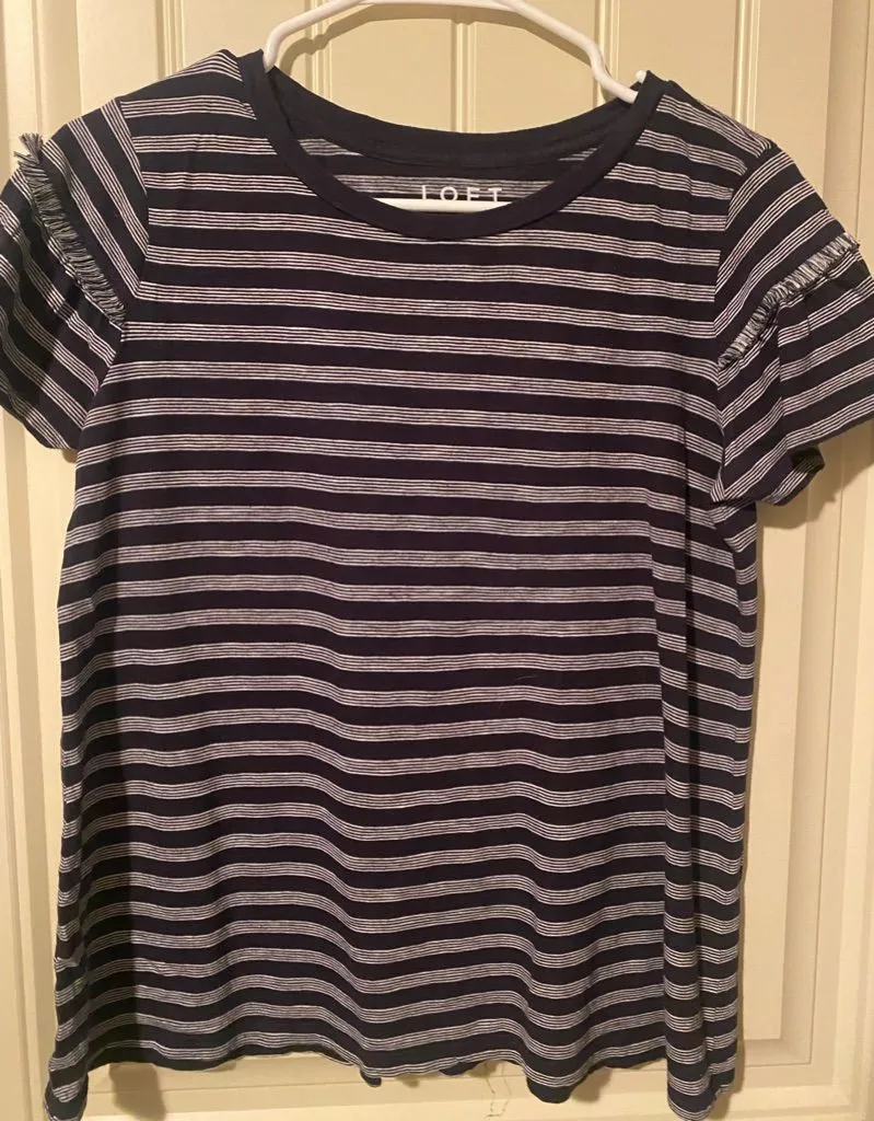 LOFT Striped Ruffles Short Sleeve Crewneck T-Shirt Top Black - $16 - From Tiana