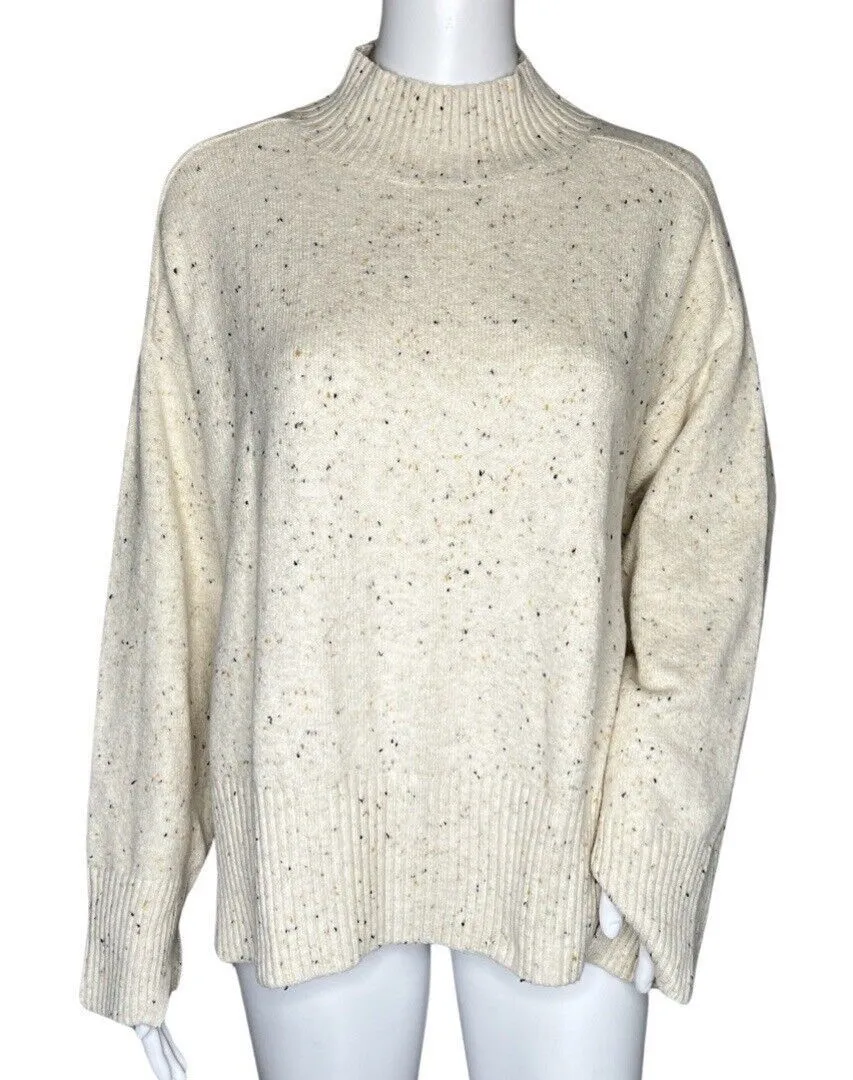 Loft Sweater Womens XS White Multicolor Specks Mock Neck Office Casual Preppy Women's Size XS Extra... Show more