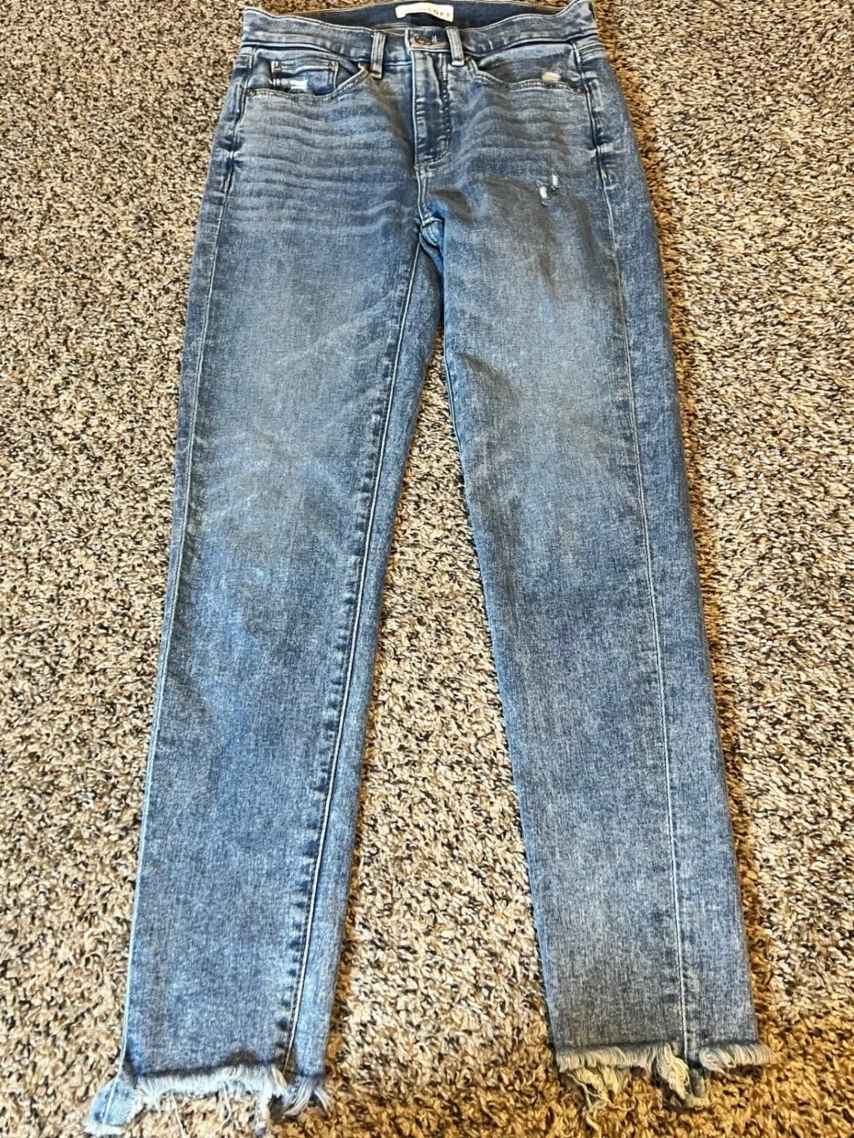 LOFT The Skinny jeans in a distressed acid wash finish with frayed hems. These stylish jeans offer a... Show more
