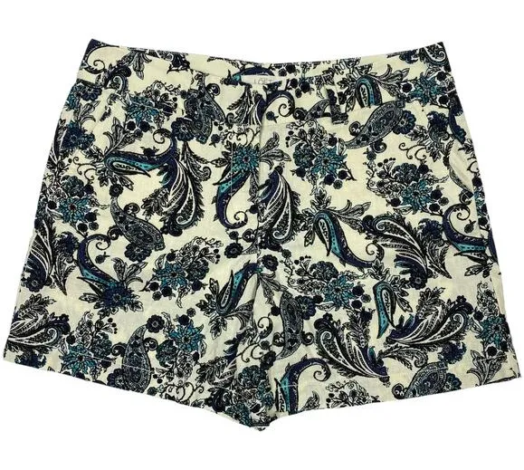 Loft Linen Blend Chino Shorts Cream Blue Turquoise Paisley Print Dressy Boho Preppy Fall Autumn Whim... Show more