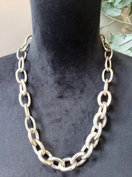 Loft Women Fashion Silver Tone Pave Rhinestone Bold Chain Link Necklace w/ Lobster. Color: Silver... Show more