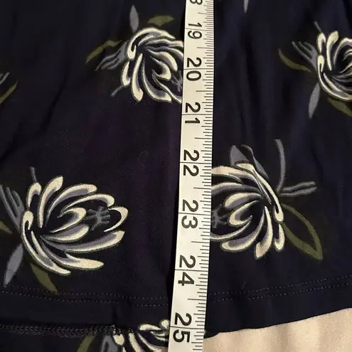 Navy blue long sleeve floral printed blouse. Has mock neck and keyhole with button closure at back o... Show more