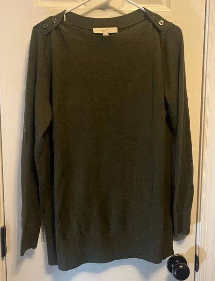 Loft Women's sweater Long Sleeves Olive Green 2 Buttons on shoulder crewneck M Size M - $17 - From Angelique