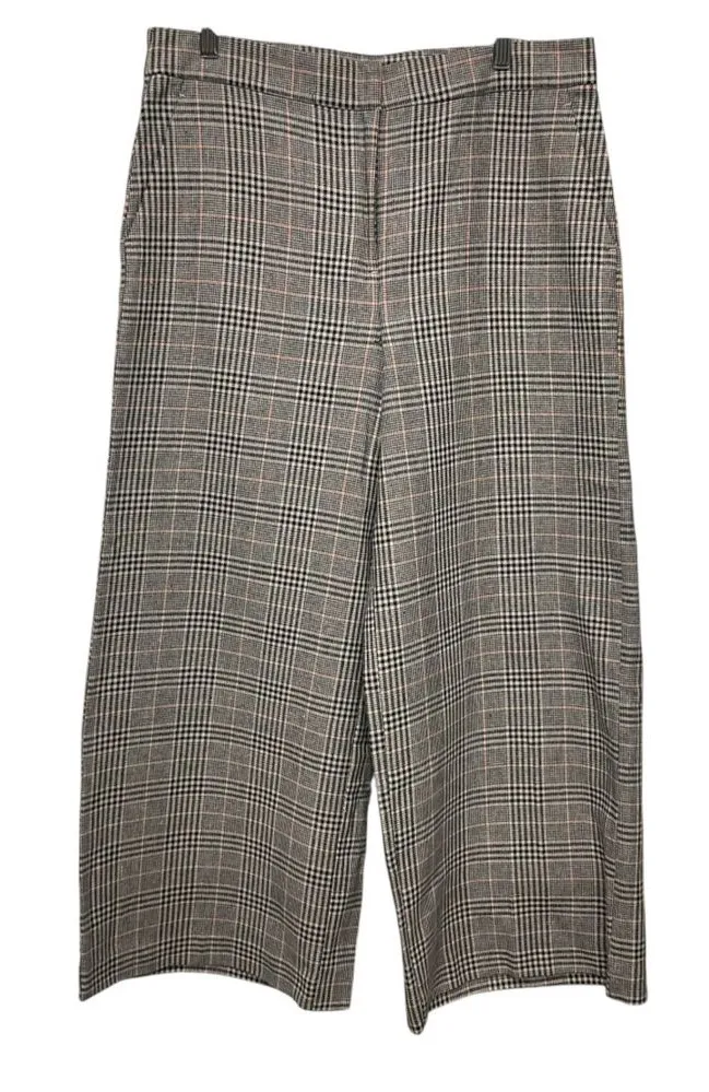 LOFT Women's Wide Leg Ankle Crop Pants in Plaid Size 10 Classic Workwear Glen plaid pattern High ri... Show more