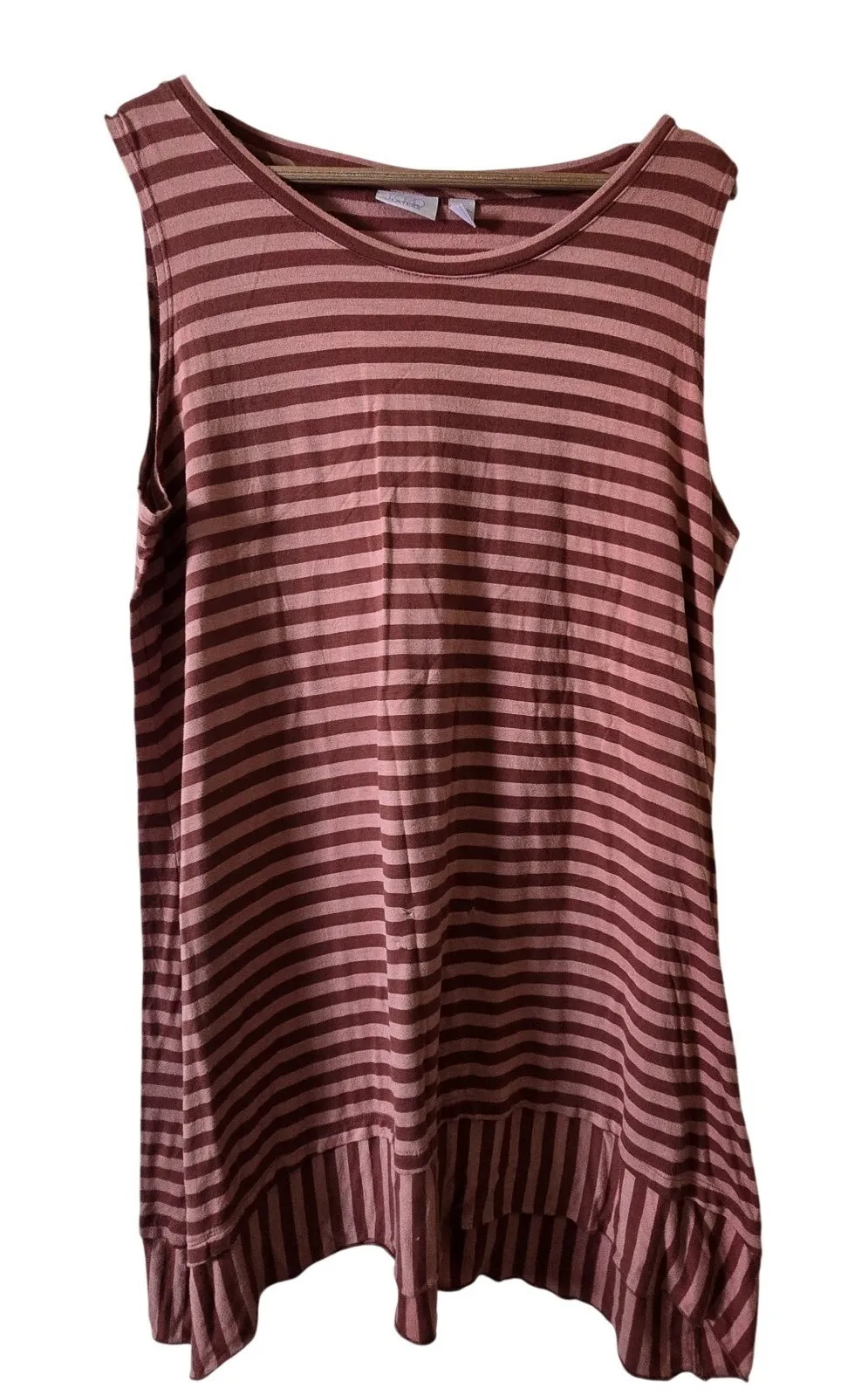 No flaws, gently used, great pre-owned condition! Smoke free, cat friendly home - clothing not stored where she has access. Fast shipping 1-2 business days! Measurements (approx) Length 30" Sleeve opening 10" Chest around 44" Keywords: LOGO Layers, tank top, sleeveless top, striped tank, casual top, tunic top, brown tank top, pink tank top, XL, extra large, summer top, layered look, vacation wear