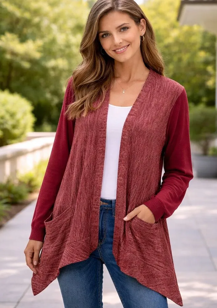 LOGO Lori Goldstein Sweater Size Small Burgundy Wine Red Knit Faux Suede Sleeves Good condition, no... Show more