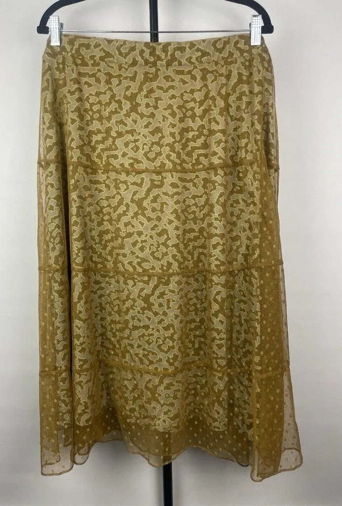 Logo Lori Goldstein Gold Polka Dot Mesh Overlay Knit Midi Skirt Size XL Excellent used condition... Show more