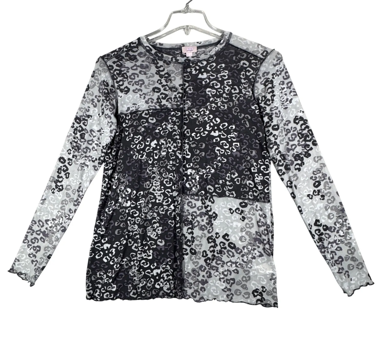 Logo Lori Goldstein Layers Shirt Leopard Print Mesh Neutral Gray Black Size S Women's Size Small C... Show more
