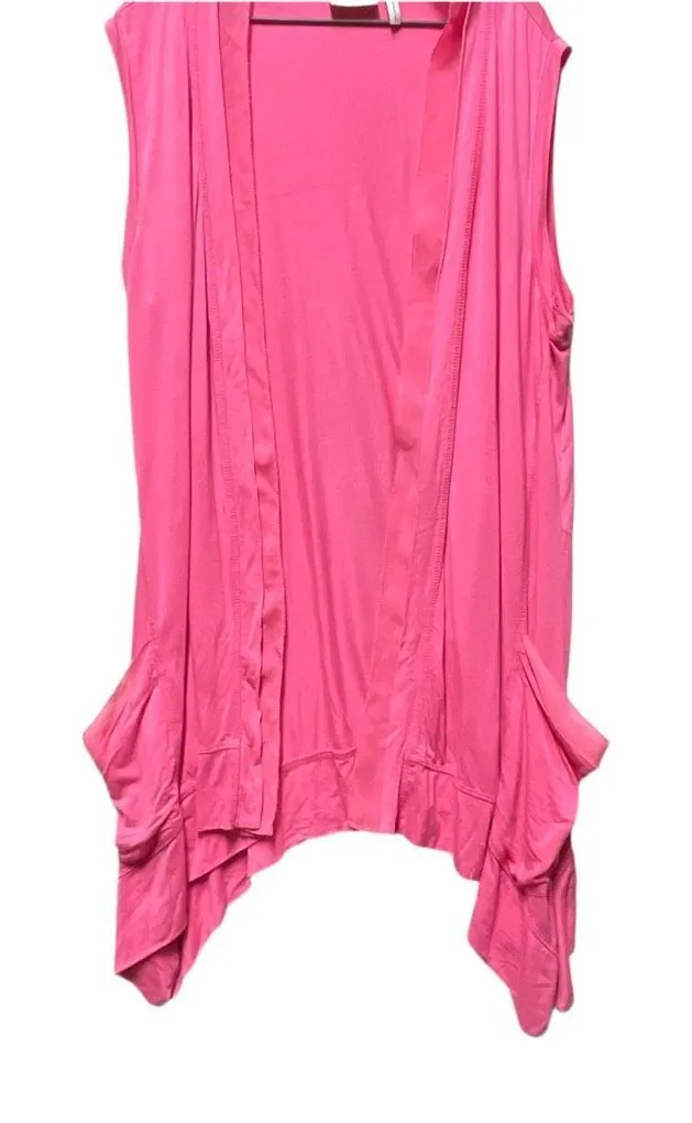 LOGO Lori Goldstein size L Cardigan vest silky crepe flowy high low Pink - $17 - From Marie