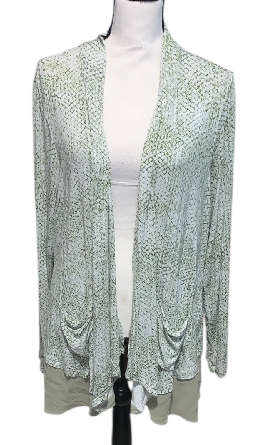 LOGO Lori Goldstein Women’s Viscose Green Print Open Front Cardigan Size XL - $20 - From Kathryn