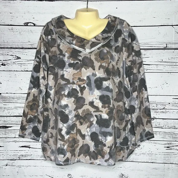 LOGO Lounge by Lori Goldstein Size L Printed Brushed French Terry Sweatshirt Top. V-Neckline with Ra... Show more