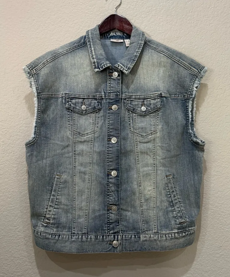 Chic LOGO by Lori Goldstein vintage wash blue denim vest. Sleeveless with a vintage retro design.... Show more
