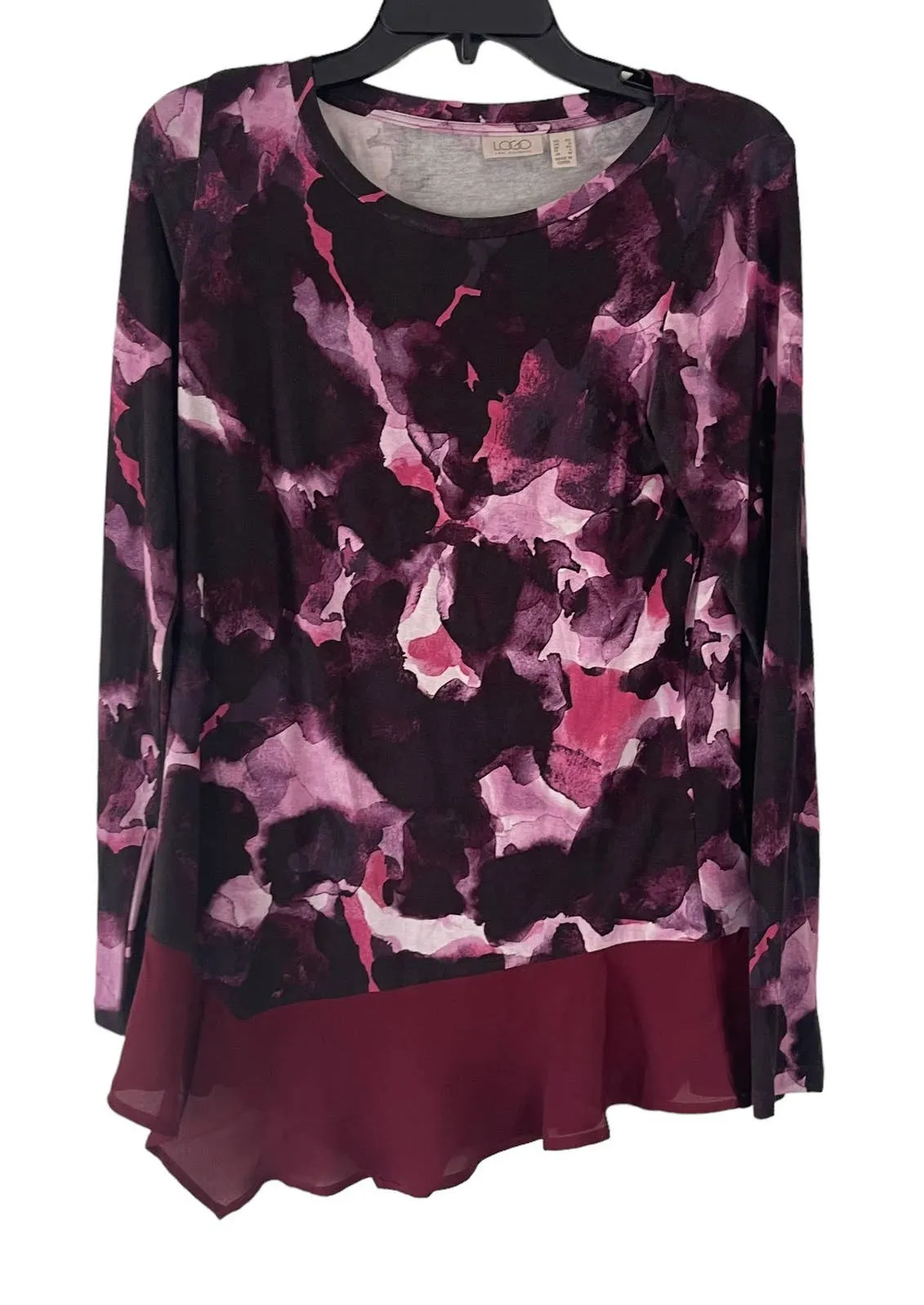 LOGO Lori Goldstein Women's Size XS Red Pink Floral Printed Soft Knit Top Crew neckline Long sle... Show more