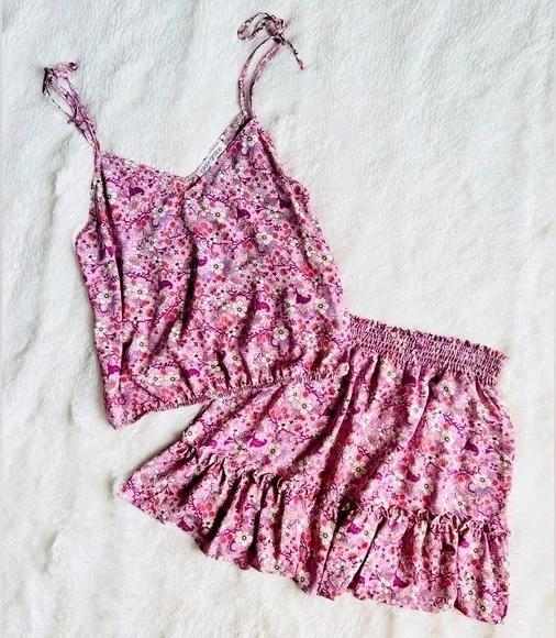 Lola & Grace‎ 2 piece Floral Set Outfit Tank Skirt Medium festival Pink - $30 - From Candice