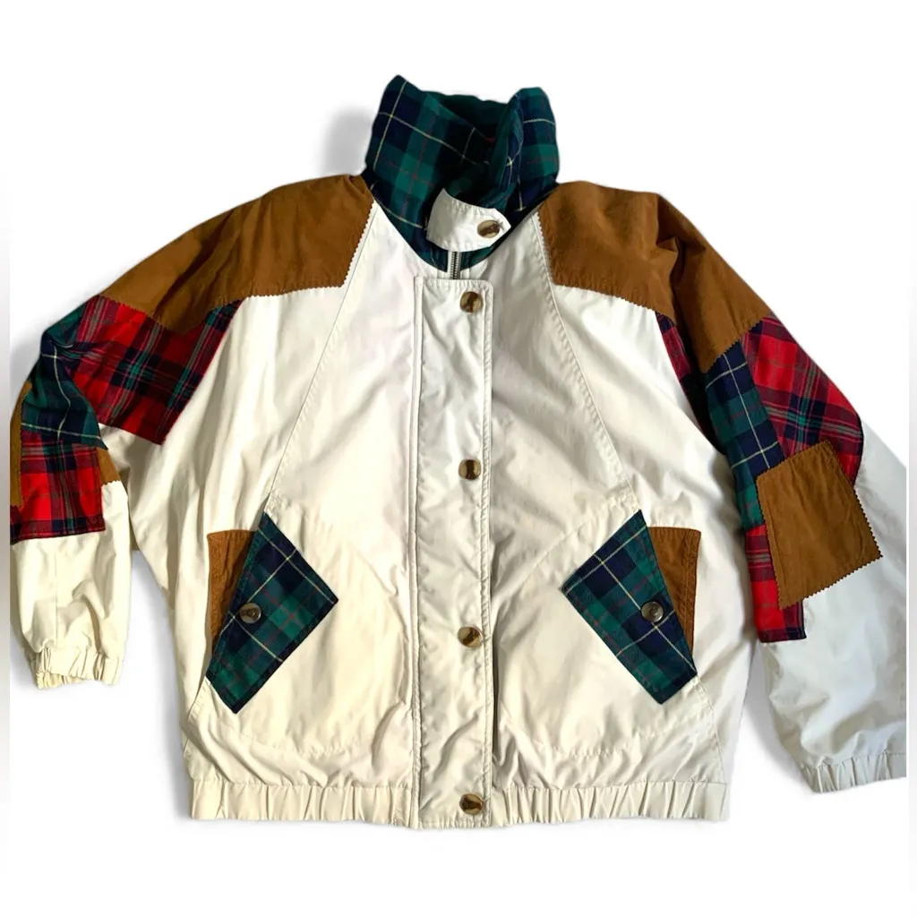 This is a great vintage 90s Streetwear Suede Plaid Patchwork Lined Bomber Jacket in Women’s Small. I... Show more