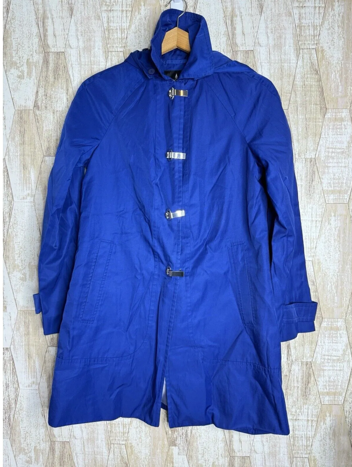 London Fog Womens Size S Trench Coat Royal Blue Jacket Hooded Overall excellent condition however d... Show more