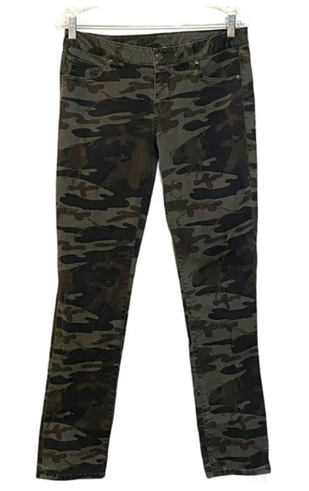 London Jeans Womens 6 30” Green Brown Camo Print Skinny Leg Camouflage Utility Women's Size 6 5 Po... Show more