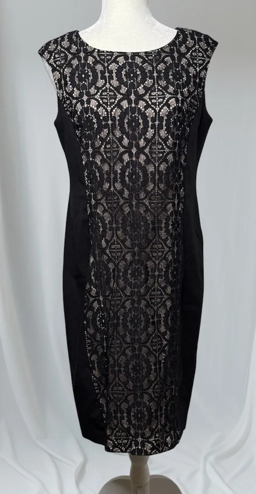 London Style Black Lace Panel Midi Sheath Dress Women’s Sz 12 Sleeveless Pencil - $20 - From Melanie