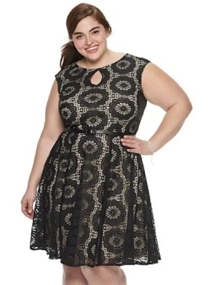 London Style Collection Black & Cream Circle Print Keyhole Dress With Belt 24W NEW. Brand new with a partial tag. Beautiful plus sized dress perfect for cocktail parties or holidays. Approximate measurements 42” shoulder to hem and 24” pit to pit unstretched. Lace overlay with beige/cream lining. 100% polyester. B10