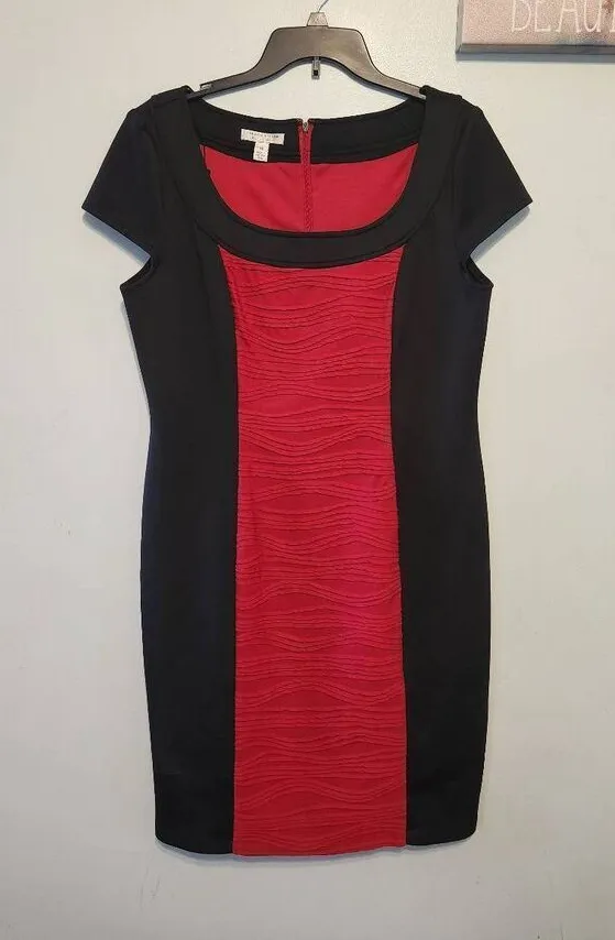 London Style Women Red Black Colorblock Sleeveless Sheath Dress Zip back Size 16 - $27 - From Ashley