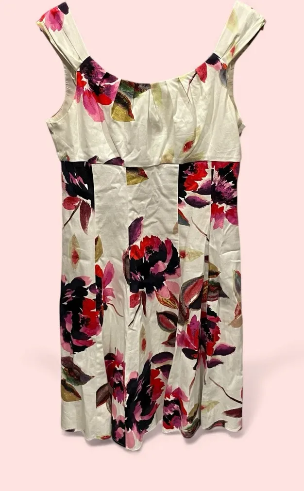 Cute creamy floral dress pleated wide strap sleeveless u back midi sz 14. Lined. GUC with 1 small ma... Show more