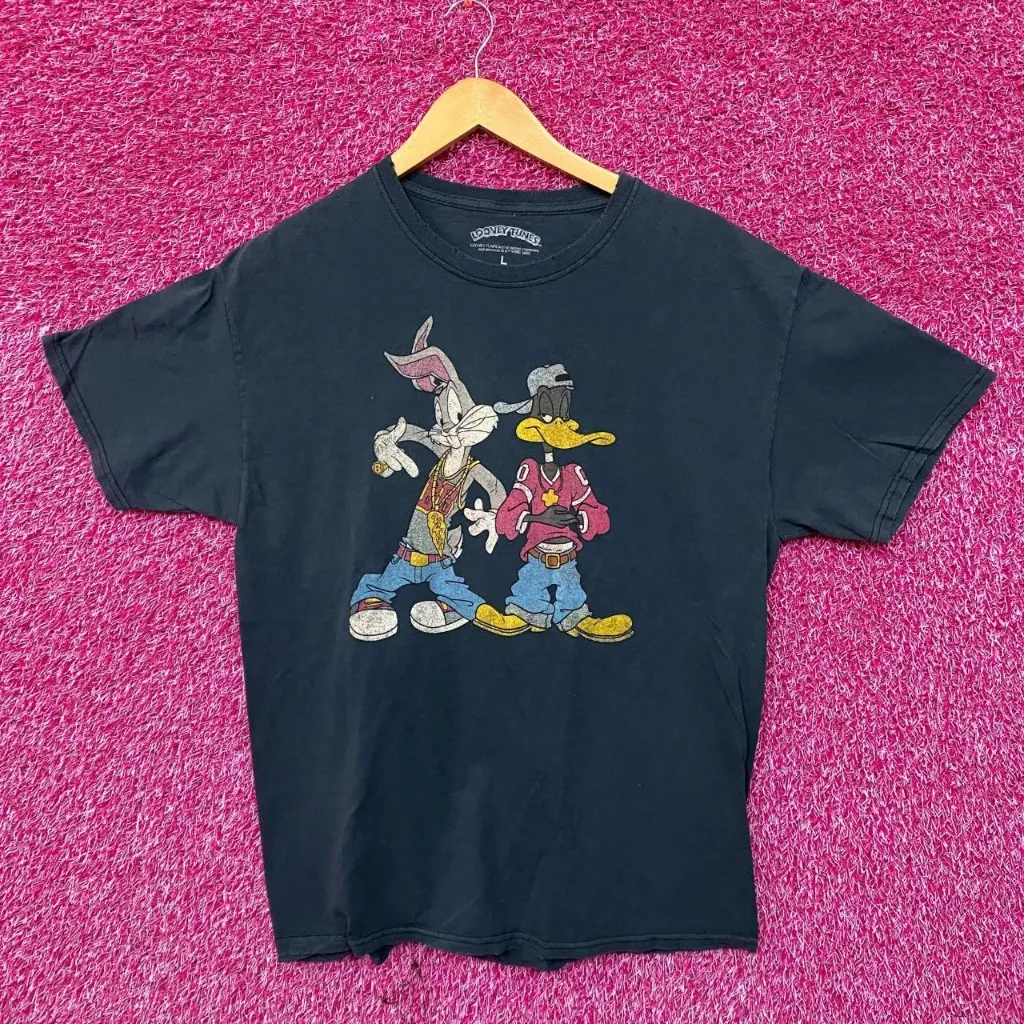 Looney Tunes Bugs Bunny Daffy Duck Criss Cross Parody Tee L generally measures 21 inches pit to pit and 28 inches long never worn first hand overstock great condition with an amazing graphic