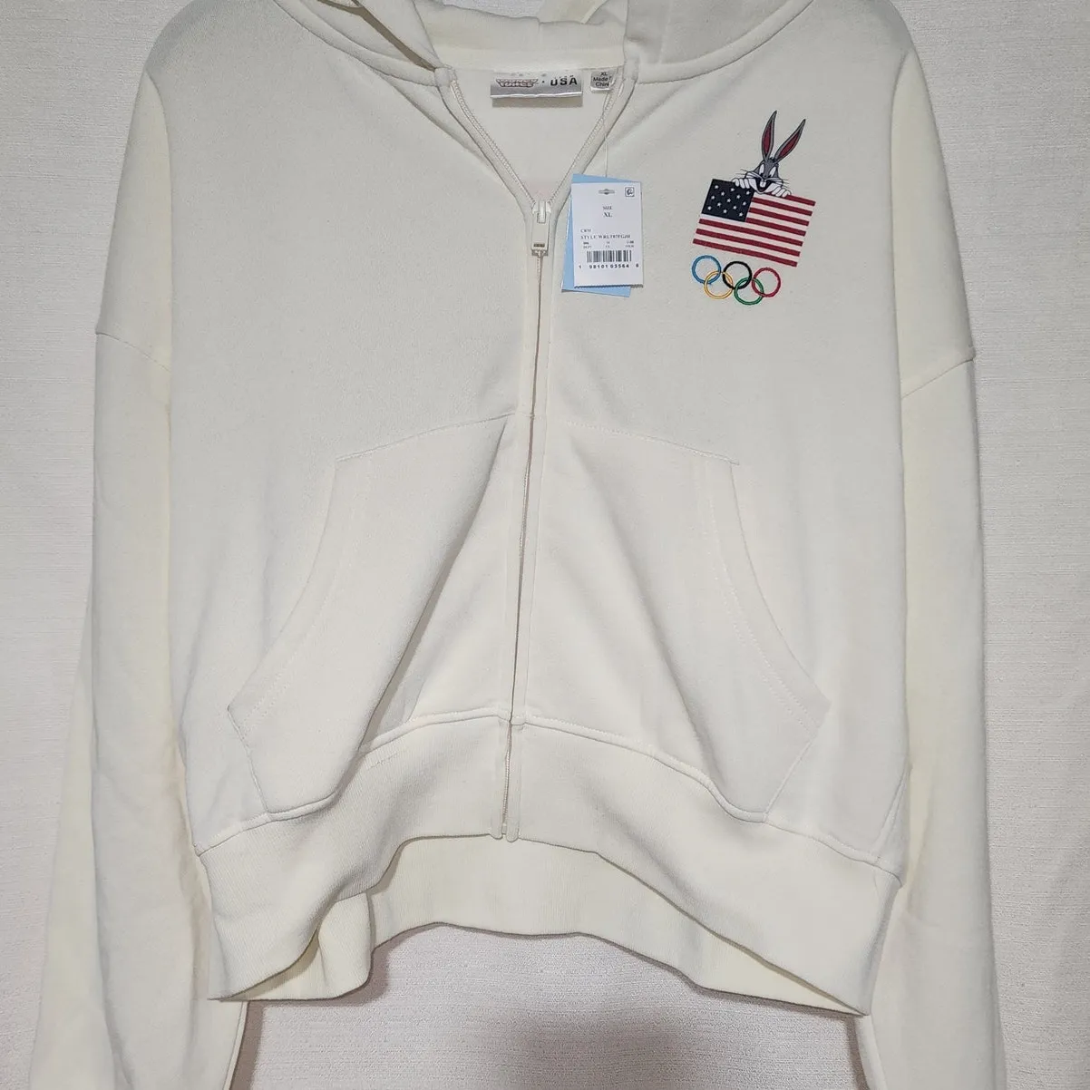 United states bug bunny white women's crop top hoodie XL - $30 New With Tags - From Loren