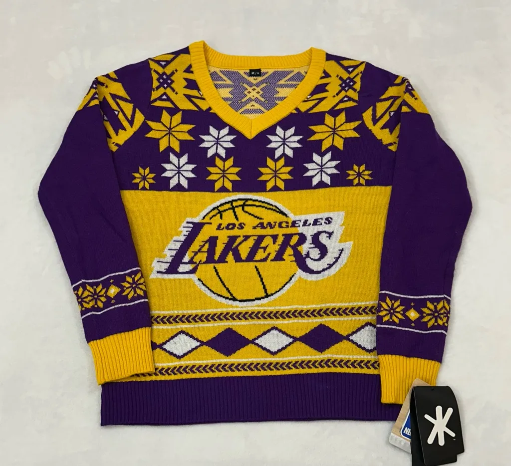 Brand new with tags never worn in excellent condition. Made by Klew x NBA basketball. Purple & Yellow colors. LA lakers holiday winter Christmas ugly pullover crewneck sweater. Women’s size Medium. Retails 80$ Please see all pictures for details